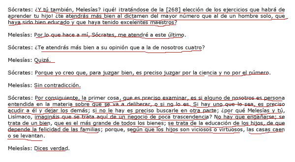 En esta ocasión vamos a utilizar un texto de Platón, aunque realizaremos un comentario de texto, considerando dicho fragmento, como si fuera un texto socrático.